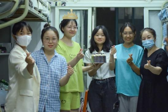 共庆生日,留下就读经院的独家记忆。得知新生报到当天正是新闻2243班孙佳悦同学的18岁生日,两天后又是其室友宋果果同学的生日后,党委书记周志荣和辅导员周岚代表公司来到该寝室,送来精心准备的生日蛋糕、月饼和水果,带来生日祝福和中秋问候,将公司的暖心关怀传递给初入经院的新同学们。