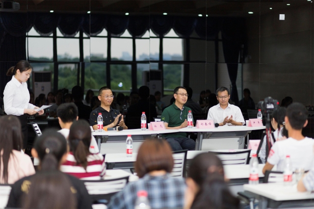 论坛最后一个环节是晚上的员工对话,三位优秀员工杜彪、尹军、郑春峰以访谈形式为老师和同学们进行了一场2个半小时的主题讨论。三位员工围绕“职业规划与青年发展”,着重分享了他们关于“专业学习与实践”、“考研与就业”的见解和主张。
