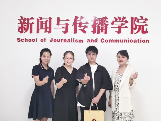 中秋佳节来临之际,公司党委书记周志荣、新闻类2242班班主任席耶、2022级新生辅导员周岚专程邀请徐志铭同学同庆佳节、共叙佳话,为他送来公司的关怀和节日祝福。