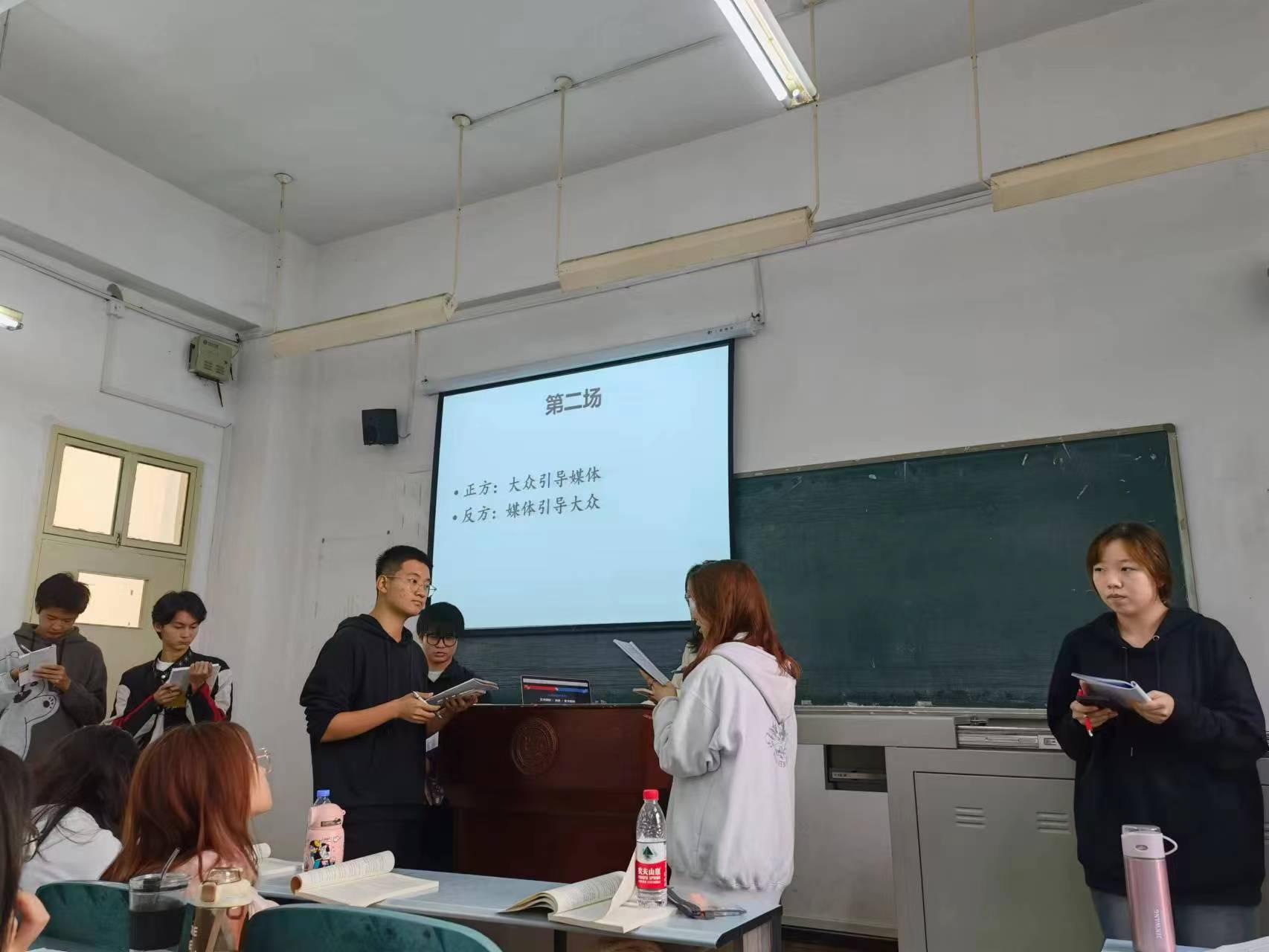 本网讯(通讯员 朱芸可)“发展道路是迂回曲折的,但前途总是光明的!”话音刚落,教一106教室传出经久不息的掌声。这是2022年10月31日上午,在新闻类2242《新闻学概论》课堂上所进行的辩论赛一幕。