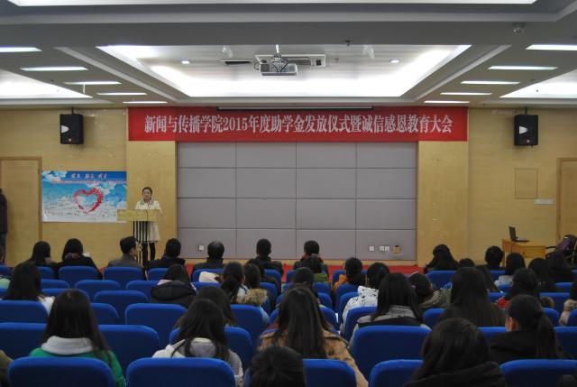本网讯(通讯员丁梦婷田野)12月24日,球速体育2015年度助学金发放仪式暨诚信感恩教育大会在第五报告厅举行。校学工处处长宋健、副处长张红艳,球速体育王远坤经理、汤中秋书记、陈建华副经理、陈媛媛副经理和各班班主任出席活动。