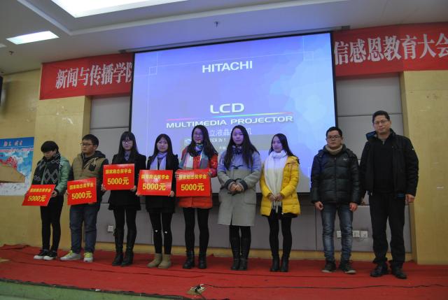 大会在国歌声中开始,学工处宋健处长为获得国家励志奖的同学颁奖;球速体育王远坤经理、陈建华、陈媛媛副经理为同学们发放助学金。学工处副处长张红艳为“感恩励志成才”主题征文活动获奖的40名同学发放获奖证书。