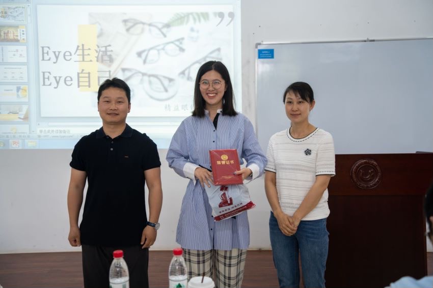 大会最后由评委宣布名次。第四组代表路紫悦、第六组代表徐志画、第二组代表吴优分别获得第一名、第二名、第三名。武汉精益眼镜有限公司向优胜组提供了太阳镜、电影票兑换券等奖品。