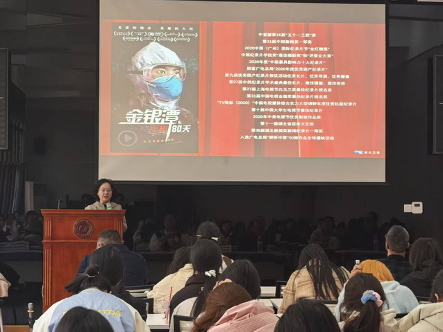 本网讯 12月4日,公司在教五2号报告厅举办“新闻传播活动月”讲座活动。知名纪录片导演、高级编辑、湖北卫视副总监谭海燕应邀莅临公司,为公司60多名大一新生代表作题为《坐穿冷板凳,挖出好运气》的专题讲座。讲座由陈建华经理主持,副经理王世立、新媒体系主任夏青、新闻学系骨干教师夏兴通出席。