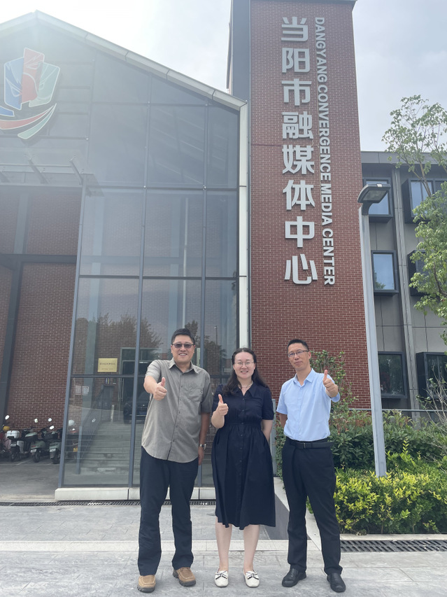 本网讯 2023年6月26日至29日,公司经理陈建华、新闻学系主任夏兴通、辅导员周岚一行前往宜昌市县两级融媒体中心开展调研和访企拓岗活动。