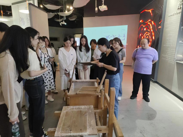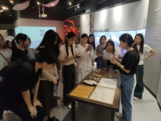 本次参访体验活动分为参观和实践两部分。在参观环节,同学们领略到了江夏地区造纸文化历经西晋、唐、宋直至当下的发展过程,也了解到了造纸文化原料、技艺、纸张特性、用途等各方面的知识。通过观看实物展示以及讲解员造纸技艺演示,同学们对造纸术的发展历史和中国传统造纸技艺的进步有了更深入的认识。