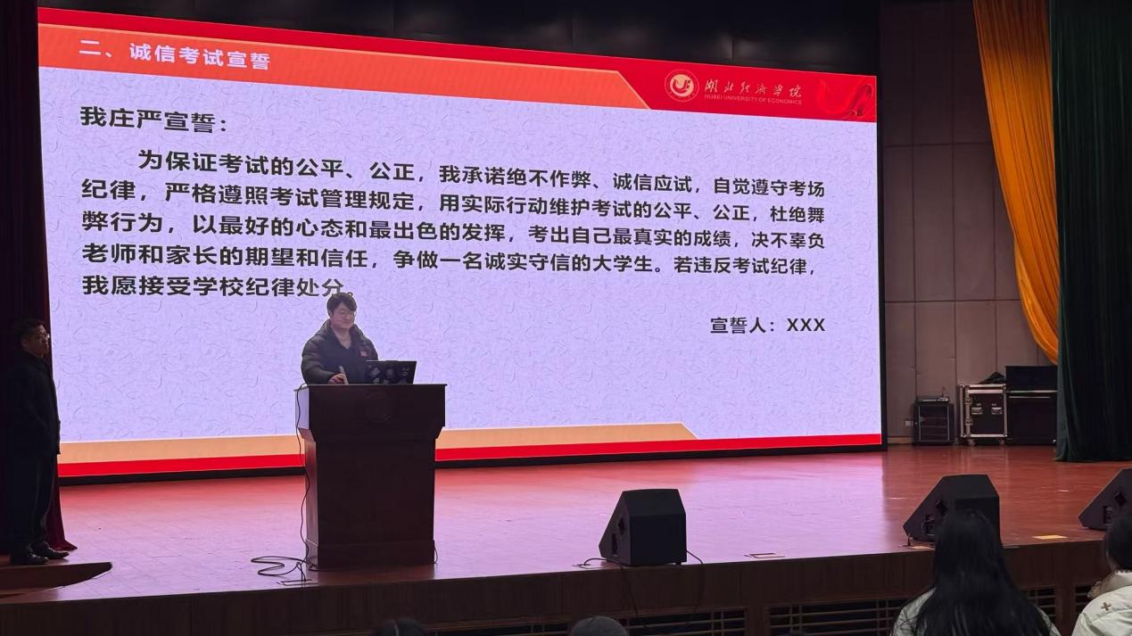 李正一带领全院员工进行诚信考试宣誓,希望每一位同学争做诚实守信的老员工,考出自己最真实的成绩。