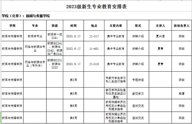 1.校情、院情及本专业办学基本情况介绍:本院的办学历史、团队队伍、教学科研、专业学习条件等;各专业的历史沿革、发展现状与前景展望等。主要在第一次新生入学教育完成,另外拟邀请校领导开展1次讲座。
