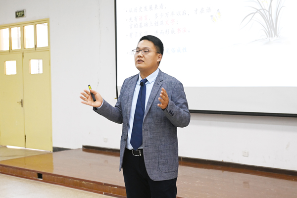 本网讯 球速体育welcome第九届教师授课竞赛,在经过公司初赛与公司专家听课评审的基础上,最后遴选出10名选手进入公司总决赛。决赛于2021年11月25日在公司教三楼成功举行。在本次竞赛中,公司中文系教师杨帅,通过教案设计、板书设计、微视频课制作、现场说课与讲课等环节的较量,凭借扎实的的专业功底,采用“通专融合”“课程思政”等先进的教学理念与教学方法,经过激烈竞争,终于不负众望,荣获本届校级授课竞赛一等奖。公司经理王远教授和副经理彭书雄教授与全院教师一起观摩了本届大赛。
