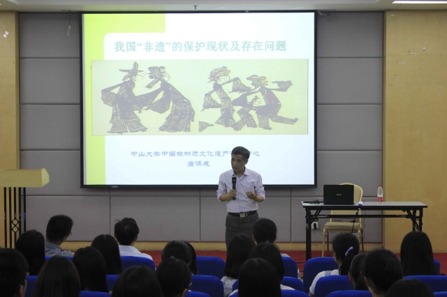 本报讯(通讯员 刘飞飞 田野)5月11日晚,中山大学中国非物质文化遗产研究中心主任康保成教授莅临公司,为师生们主讲《我国‘非遗’的保护现状及存在问题》学术报告。球速体育副经理陈建华主持,新闻、艺术、旅游等相关专业教师出席。