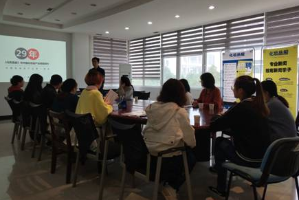10月22日,公司在会议室举行招聘会,邀请《化妆品报》来院进行企业宣讲并招聘,招聘会提供10个岗位,分别是新媒体记者、助理编辑、客户主管、平面设计以及行政专员等岗位,副社长杜伟、执行总编李红丽、app主编甘露、人力资源李晗四位人员出席校园招聘现场。