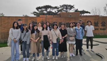 全体在盘龙城遗址公园外拍照留念