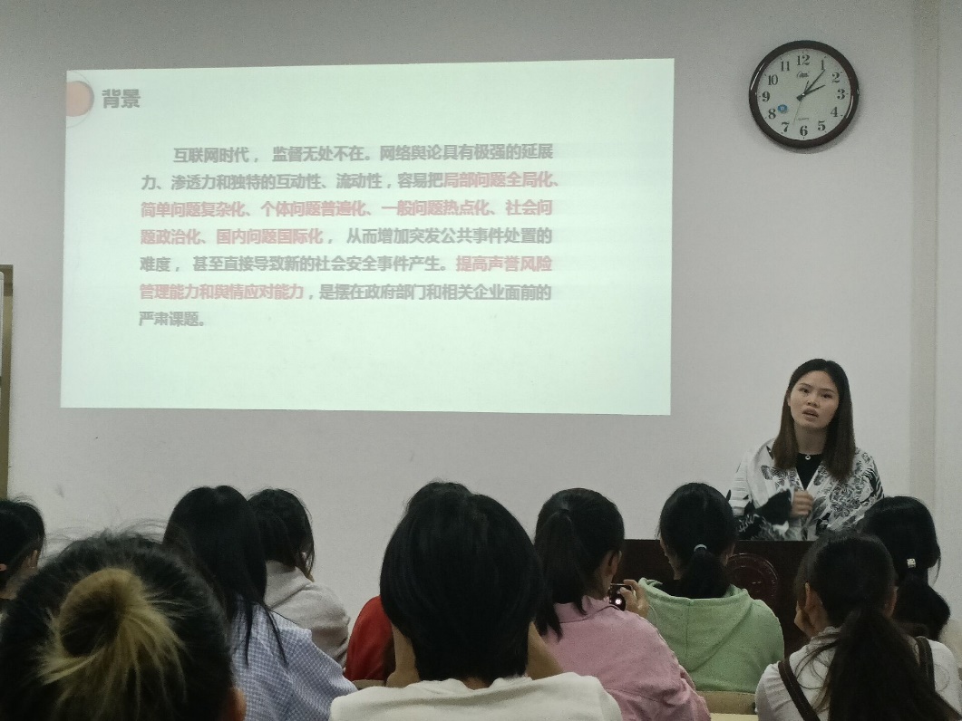 江老师首先从网络舆情的产生背景谈起,她认为在互联网时代,网络舆论具有极强的延展力、渗透力,提高舆情管理与应对能力,是政府和企业部门面临的严肃课题。她同时强调,在自媒体时代,信息的互动性、传播性、流动性大幅增强,局部事件也可能产生全局影响,舆情事件往往呈现出多元化特征,这给舆情分析人员的能力提出了更高要求。随后,江老师以近期在娱乐圈流量较多的杨洋和肖战为例,展示了舆情分析的大致过程,并详细解释了各种参数的含义及用途。