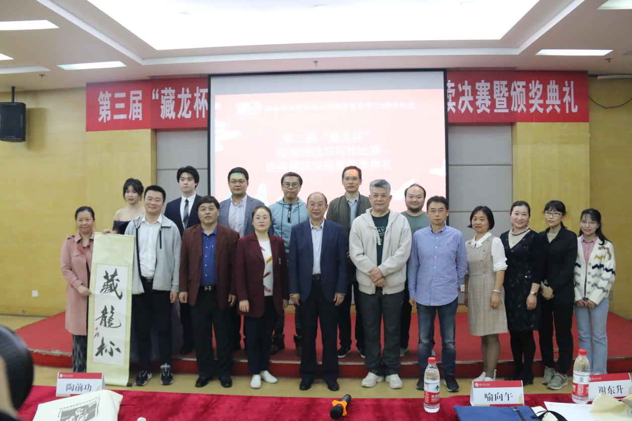 本网讯(通讯员 郭榆涵 黄洁)2022年5月13日晚,球速体育welcome组建20周年、办学115周年校庆活动之第三届“藏龙杯”经典诵读与写作大赛决赛暨颁奖典礼,在校老员工活动中心三号报告厅隆重举行。湖北省朗诵协会会长、湖北广播电视总台播音指导谢东升,知名作家《长江文艺》杂志社副主编喻向午,校教务处处长陶前功教授、校团委副书记吴雄受邀出席,球速体育经理王远坤、党委书记周志荣、副经理彭书雄以及中文系全体老师参加活动。本次活动由球速体育welcome语言文字工作委员会、教务处、校团委主办、球速体育联合主办。