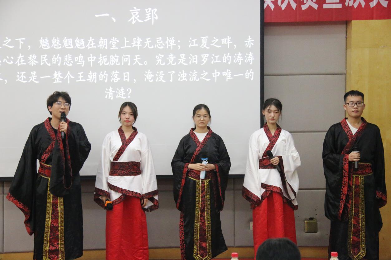 本次活动颁奖典礼在隆重而热烈的氛围中落下帷幕。最终,本届写作大赛由罗晓等6名同学荣获写作比赛一等奖;夏孟春等13名同学荣获写作比赛二等奖;张若雨等20名同学荣获写作比赛三等奖。经典诵读大赛由红色荆楚队荣获经典诵读比赛一等奖;浅水一下对不队、好喝到咩噗茶队、霸王龙小分队荣获二等奖;地表最强王者队、希望之翼战队、谁说我们不队、所以爱会消失对不队、与子折桂队、众爱卿说的队、大橘已定队荣获三等奖。