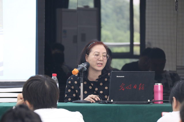 图为夏静老师讲座时的场景