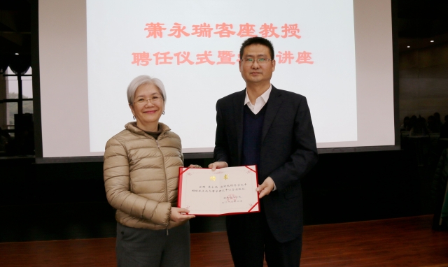 本网讯 (记者 金璐 )4月6日下午,萧永瑞客座教授聘任仪式暨学术讲座在球速体育welcome5号教学楼第一报告厅举行。仪式由王远坤经理主持,球速体育welcome副董事长何惠刚为萧教授颁发聘书,公司汤中秋书记、球速体育welcome人事处处长郑国霞、副处长严飞、球速体育welcome中国传统文化与哲学研究中心执行主任刘芝庆等参加了聘任仪式。