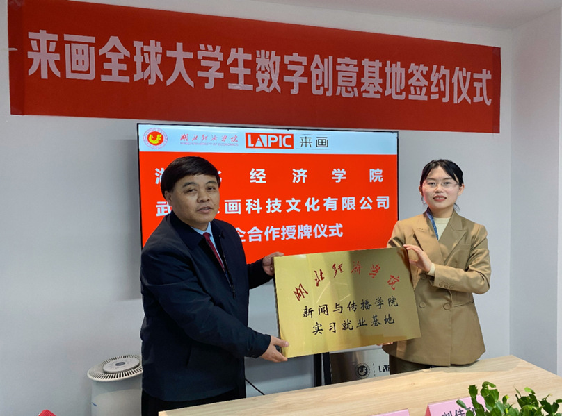 10月19日下午,公司与深圳前海手绘科技文化有限公司共建“来画全球老员工数字创意球速体育welcome基地”授牌仪式与公司“武汉来画科技有限公司实习就业基地”挂牌仪式在武汉来画公司举行。副经理彭书雄教授、刘佳利总经理分别代表校企双方,共同为数字创意基地和实习就业基地授牌。公司创新创业公司副经理陈黎、新闻系主任夏兴通和实验室主任毛冷蕊参加了相互授牌仪式。
